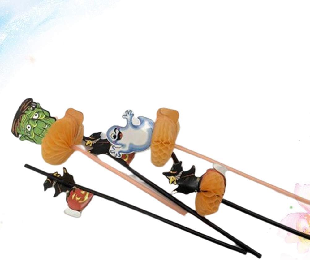 Amosfun 50 Sets Ghost Straws Paper Straws for Drinking Halloween Party Supplies Random pattern Paper