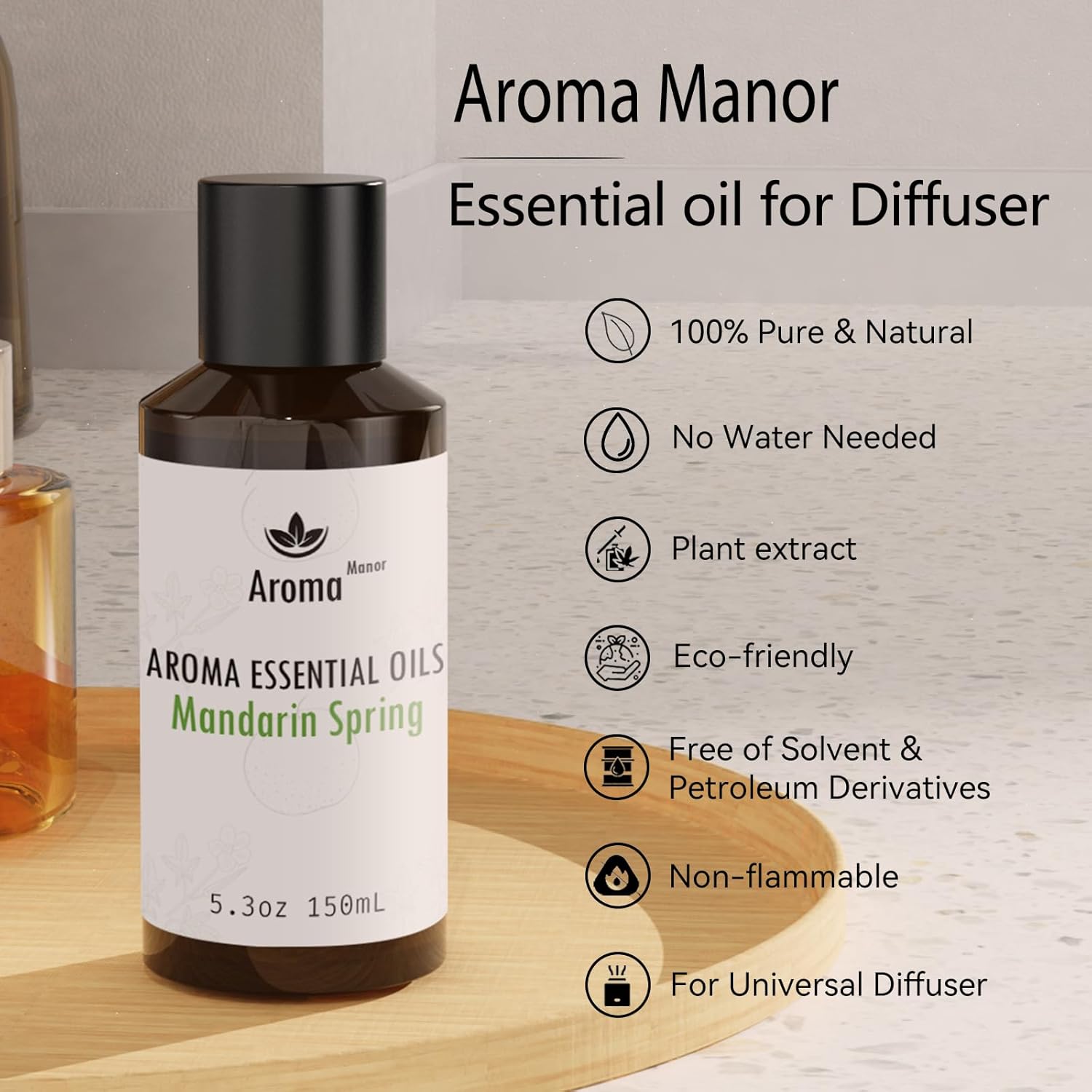 “Amidst the spring breeze, crisp notes of green citrus unfold. Through dew-kissed meadows, the scent of fresh grass weaves a lively tale. Rooted in the essence of joy, the base notes of gardenia blossom. A fragrance, a symphony of spring—citrusy brightness, grounded in the bloom of floral serenity.” Freshly peeled mandarins in the crispness of early spring, complemented by the invigorating zest of lime. The gentle undertones feature a hint of fresh green grass and the subtle sweetness of gardenia. 【Pure Oils with Clean, Safe Formula】 Our diffuser oils are 100% pure oil, free from any water, alcohol, or DPG. Unleash an extraordinary aroma – complex, rich, and lingering – capable of transforming any mood or environment. 【Two Months of Continuous Fragrance.】 Aroma Manor is expertly designed for use in waterless diffusers, ultrasonic aromatherapy machines, and humidifiers. Our diffuser oils fill your space within 3-4 minutes, providing a quick and consistent diffusion experience.