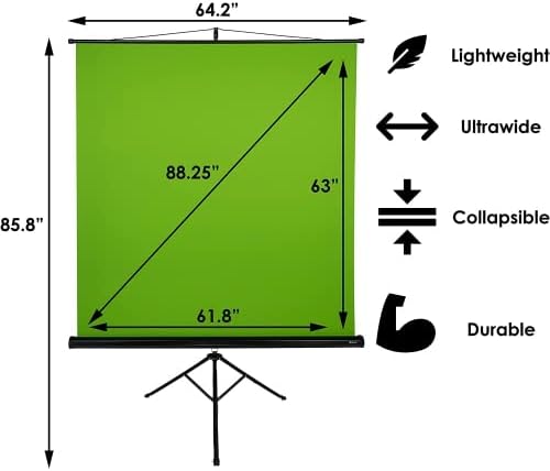Chroma Key Green: Easily replace the background of your photo, video, or stream with Chroma Key Editing! Wrinkle-Resistant: The collapsible nature of the greenscreen protects it from wrinkles and helps ensure an even tone across the entire backdrop Ultra-wide Screen: One of the widest portable greenscreens available, the nearly 62" inches of usable backdrop ensure maximum coverage Versatile: Whether you're streaming at home or on location for a shoot, the compact and portable nature of the green screen make it a breeze to bring along