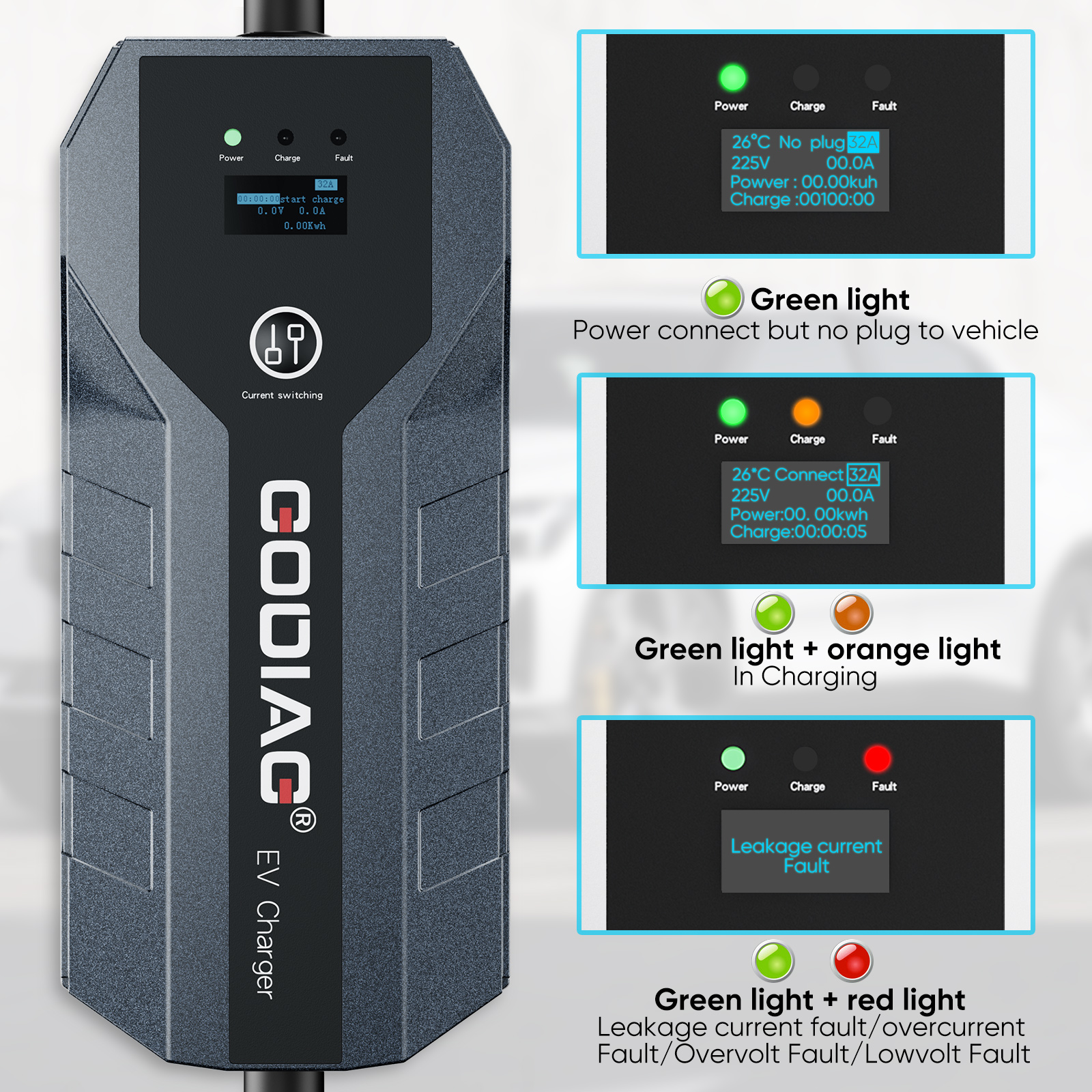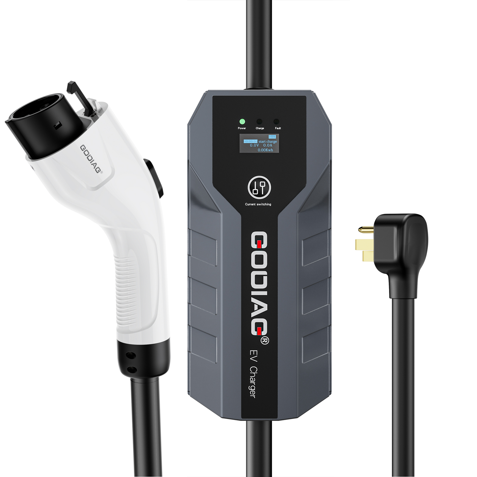 Godiag Portable EV Charger Level 2 32A 220-250V 21ft Cable, 10/16/24/32A Adjustable Plug-in EV Charging Station NEMA 14-50 Plug