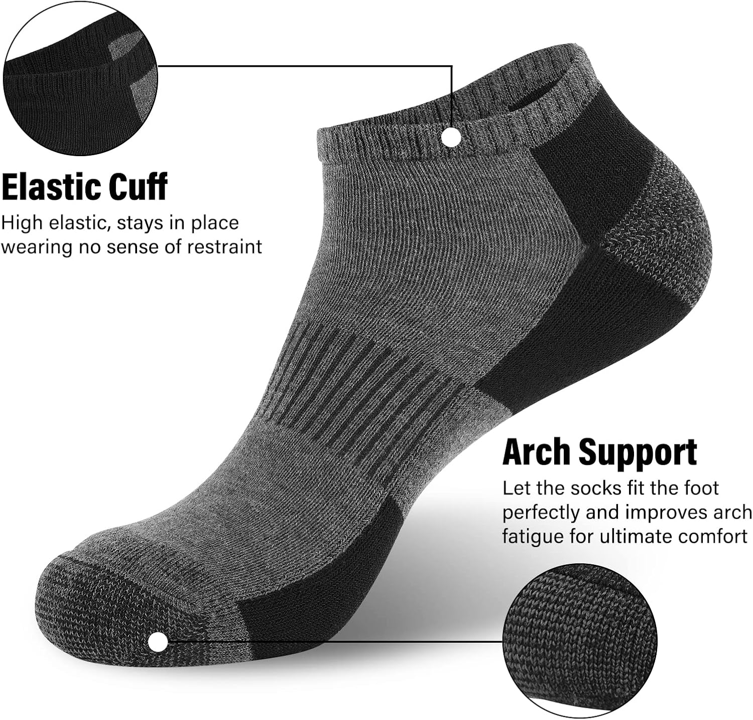 COOPLUS 12 Pack Mens Cushioned Ankle Socks, Low Cut Breathable Casual Socks (Shoe Size 6-11) One Size 12 Pairs Dark Grey