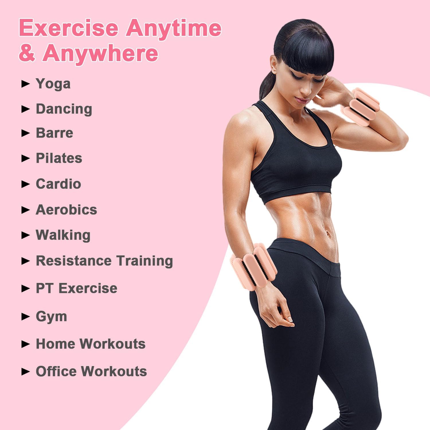 [Wrist Weights for Women] the wrist ankle weights are a special design for Training,Adopting a streamlined exterior design on the edge area of the unit weight block . Fit arm weight straps have a secure and comfortable fit. That is easy to adjust the elastic velcro tape according to your wrist or ankle . The snug fit makes it easy to wear and incorporate in any workout for women. Comfortable & relax experience with the smooth silicone surface and snug fit of the wrist weights. [Easy Workout & Fitness ] the Wrist and Ankle Weights are totally 2 lbs in a pretty Packaging box (Set of 2).the 2 lbs wrist weights are enough to fit daily Training and fitness for women absolutely. crafted from well-designed fitness materials,premium silicone bracelets on elastic velcro tape and the stainless steel wrapped in a soft silicone layer,streamlined exterior design on the edge area.all of these can help you enhance muscle strength or improve aerobic effectiveness. [ONE SIZE FITS ALL] Specially designed ankle and wrist weights for women.The surface of the wrist weight bracelets is made of premium soft silicone material and built-in stainless steel ring,waterproof and sweat-proof design. offering exceptional flexibility and comfort.easy to clean and odor free,adjustable elastic velcro makes these wrist weights fit everyone. [Versatile Workouts Wrist weights ] Ideal for fitness, walking,yoga, swimming, slow running,cycling etc. the wrist bracelets weights boost your Training efficiency. they're also great as ankle weights for women.as the special Design, They can absolutely prevent muscle straining and reduce the risk of injury from repetitive tasks, keeping your joints healthy.