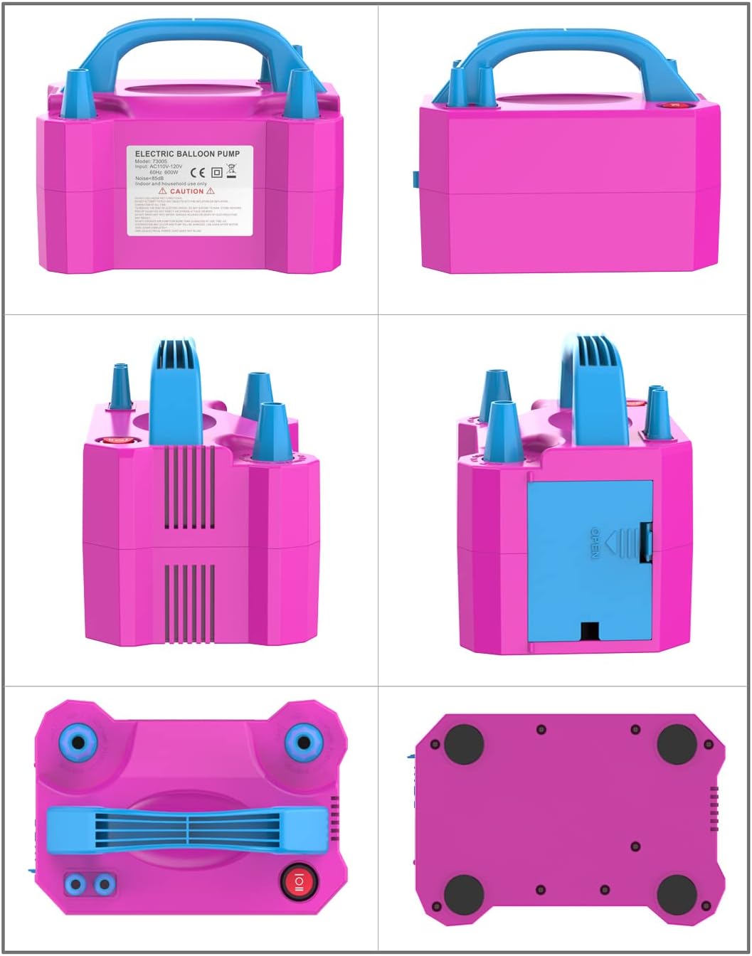 LANGXUN Portable High Power Electric Balloon Pump, Two Nozzle 110V 600W Air Blower Electric Ballon Inflator Pump for Party Latex Balloon Decoration Supplies (Yellow) Rose Red