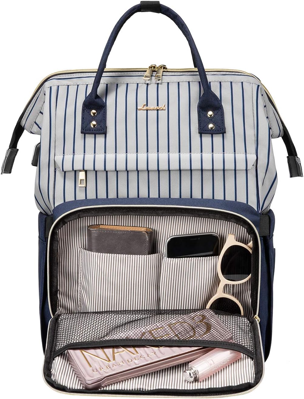 LOVEVOOK Laptop Backpack for Women Work Laptop Bag Stylish Teacher Backpack Business Computer Bags College Laptop Rucksack, Stripe-Navy 15.6 Inch Stripe Navy