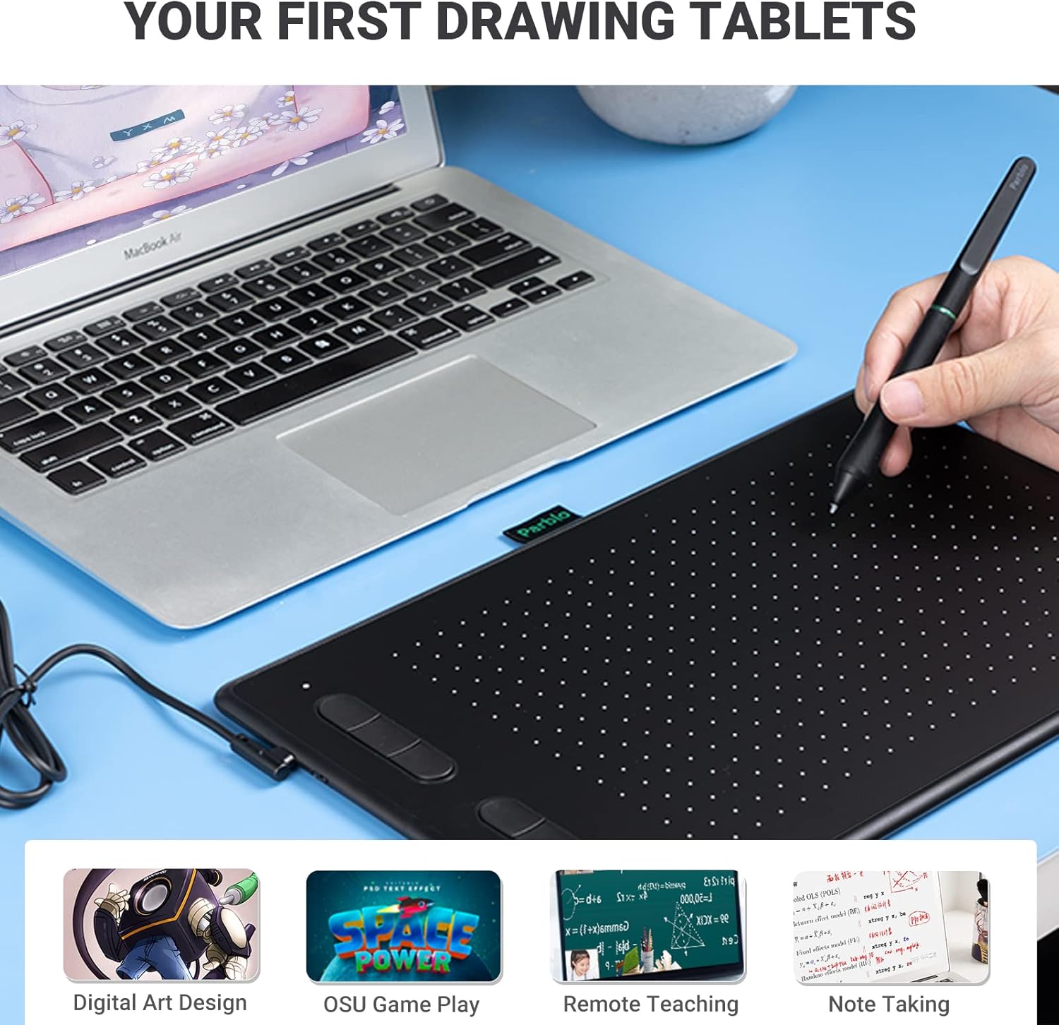 Parblo N10B Drawing Tablets,8192 Levels Pressure,Battery-Free Stylus Pen for Digital Art, Design, Skech.Compatible with Mac/Windows/Android/Chrome OS 10x6 inch
