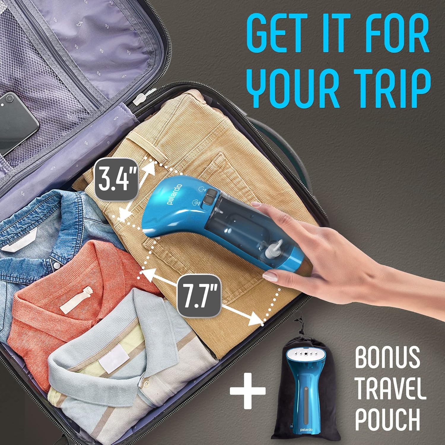 POLARDO Clothing Steamer, Travel Size, Vacation Essentials, HandHeld Portable Garment Steamer, Small Hand Held Steamer for Any Fabrics, Steamer for Clothes, US Travel Must Haves, 120V Blue