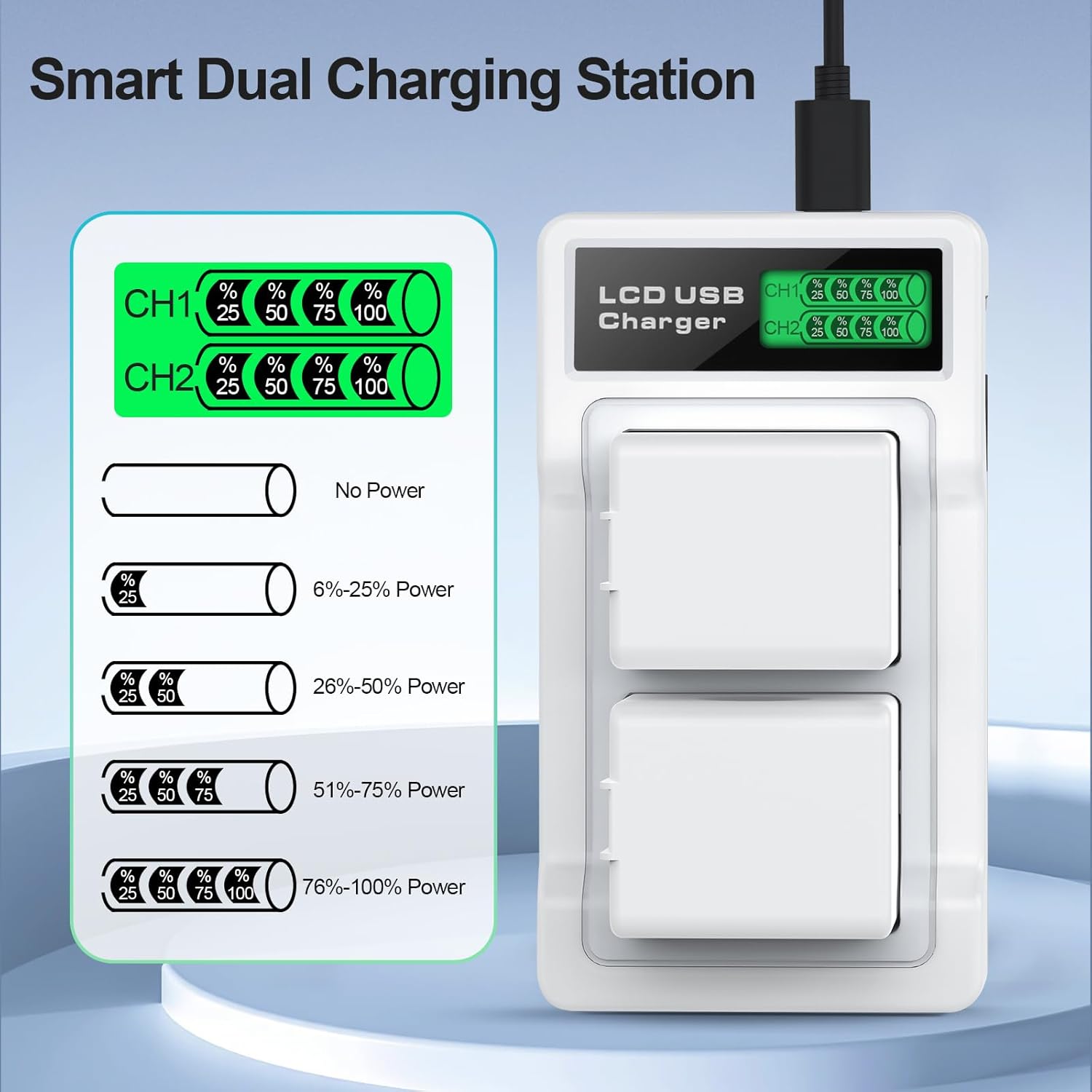 【Battery Specification】Battery Type: Li-Polymer Battery. Capacity: 2440mAh 3.85V 17.57Wh. Condition: 100% New. 【Dual Charging Station】Smart dual charging station can charge 2 batteries at the same time by connecting to power bank, AC adapter, laptops or more USB power sources. LCD digital display screen makes it easier to check battery power and charging status. 【Built in USB Cable】The arlo camera battery replacement charger comes with a built-in USB charging cable and can be stored in a designated secure trough to save space and prevent damage. 【Multiple Protection System】Built-in intelligent protection chip, providing over heating protection, over charge protection, over current protection, over voltage protection and short circuit protection to ensure safety during use.