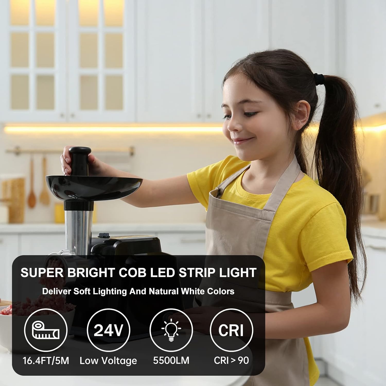 QiGe Natural White COB LED Strip Light,16.4 feet Premium High Density Dimmable COB Strip,2400 LEDs,4000K,CRI 90+,5500 Lumen,24V LED Tape Lights for Bedroom,Under Cabinet, Home DIY Lighting Project
