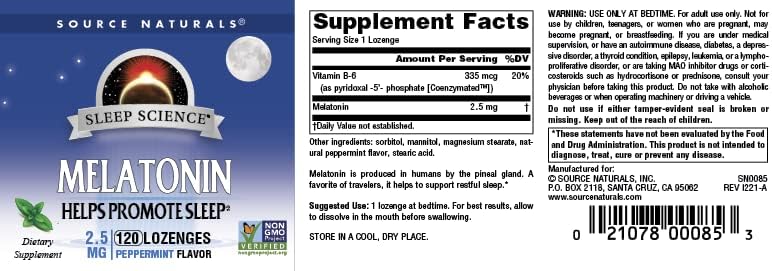 Source Naturals Melatonin 2.5 mg - 120 Peppermint Flavored Lozenges 1 120 Count (Pack of 1)