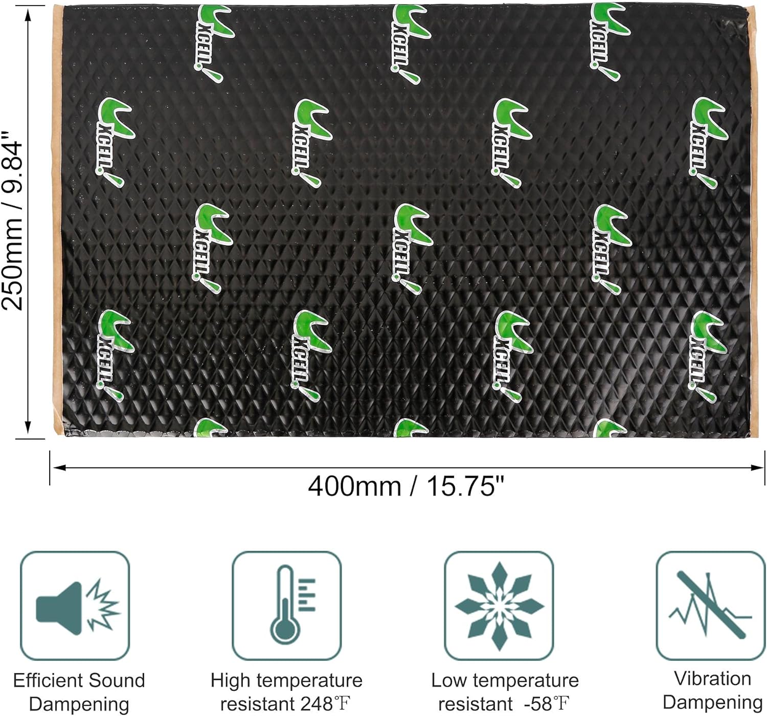 [Specification] Each Mat Size: 400x250mm / 15.75''x9.84''(L*W), Total Coverage Area: 36 sqft, Thickness: 2mm / 80mil, Number of sheets: 34pcs. Roller is not included. [Butyl Material] Made of durable butyl rubber vibration dampening material with aluminium foil, waterproof.Help to make your car stay cooler in the summer and warmer in the winter. [Funtion] Automotive Sound Deadener Mat, Noise Insulation and dampening Material, High Noise Reduction , Thermal Insulation Properties , Non-flammable , Flame Retardant. [Easy to Cut and Install] The sound dampening material comes in handy size which make it easier in terms of cutting and installation process! Automotive self adhesive insulation, every insulation pad is high temperature resistance.