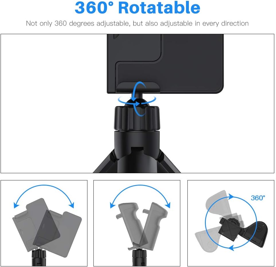 ❤SELFIE STICK TRIPOD - This tripod stand holder can be used as a selfie stick, with grooved rubberized grip make its easy to hold and operate smart phones in one hand, grip your phone like a camera, unlock the full potential of your smart phone's camera. And the phone mount can be positioned upright for self-standing portrait mode. Lightweight and compact design, easy to pack in your pocket or bags to anywhere when you need. Great for camping, travelling, and hiking. ❤STABLE & ROTATABLE - This cell phone tripod is constructed of a upgraded material and structure which can locks your phone into a position securely. Don't need to worry about the phone will shaking or falling off during use. This phone tripod stand included a smart ball-head design supports 360 degree endless possibilities when positioning your phone. And Non-slip feet design keeps this adjustable tripod steady on any surface. ❤1/4" STANDARD SCREW - This mini tripod with 1/4 inch standard thread is attachable to any regular sized tripod, monopod, smartphone, digital cameras with standard 1/4" screw thread at the bottom. Make your mobile phone into a SLR camera quickly. Easy to carry anywhere and perfect for taking photos in birthday party, family dinner and company celebration. ❤BLUETOOTH REMOTE - This phone tripod with the accompanied bluetooth shutter for iOS and Android Phones allows you to take selfies or group photos easily from a distance up to 33 ft. No apps needed to download, easily connects to your cellphone's bluetooth. Ideal for taking individual, group photos & wide angle views. Just free your hands to record every wonderful moments in your life.